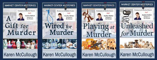 The Market Center Mysteries series is now up to four novels set at a fictional large convention center in Washington, D.C. The sleuth/main character is Heather McNeil, who is officially the assistant to the director of the center, and unofficially the chief peacekeeper and complaint collector. Her ability to listen, soothe ruffled feathers, and find solutions to problems helps keep the events held at the Center running smoothly. Those same qualities mean she’s in the perfect position to solve the crime when murder crashes the events.