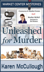 The most recent book in the series, Unleashed for Murder is set at a pet products trade show, which means lots of pet references and even a few cameos for various furry (and a few non-furry) friends.